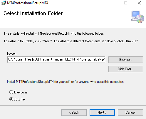 3) Read and Accept our License Agreement, select a folder where you're going to install MT4Professional and click Next to start the installation.