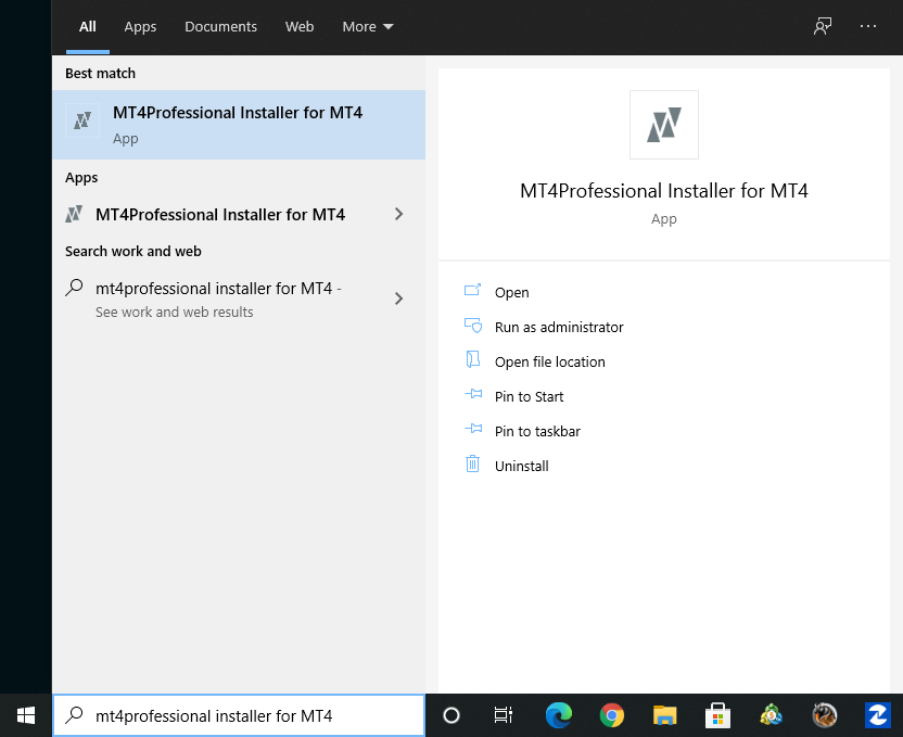 If the already installed version is the same one you're currently installing, going on a repair of the installation will be performed. If MT4Professiona has never been installed, the version won't be shown (The "Version Installed" column may not be visible).