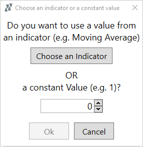 We can select an indicator opening the section described in How to Add/Edit Indicators or we can add a constant (a fixed numeric value).